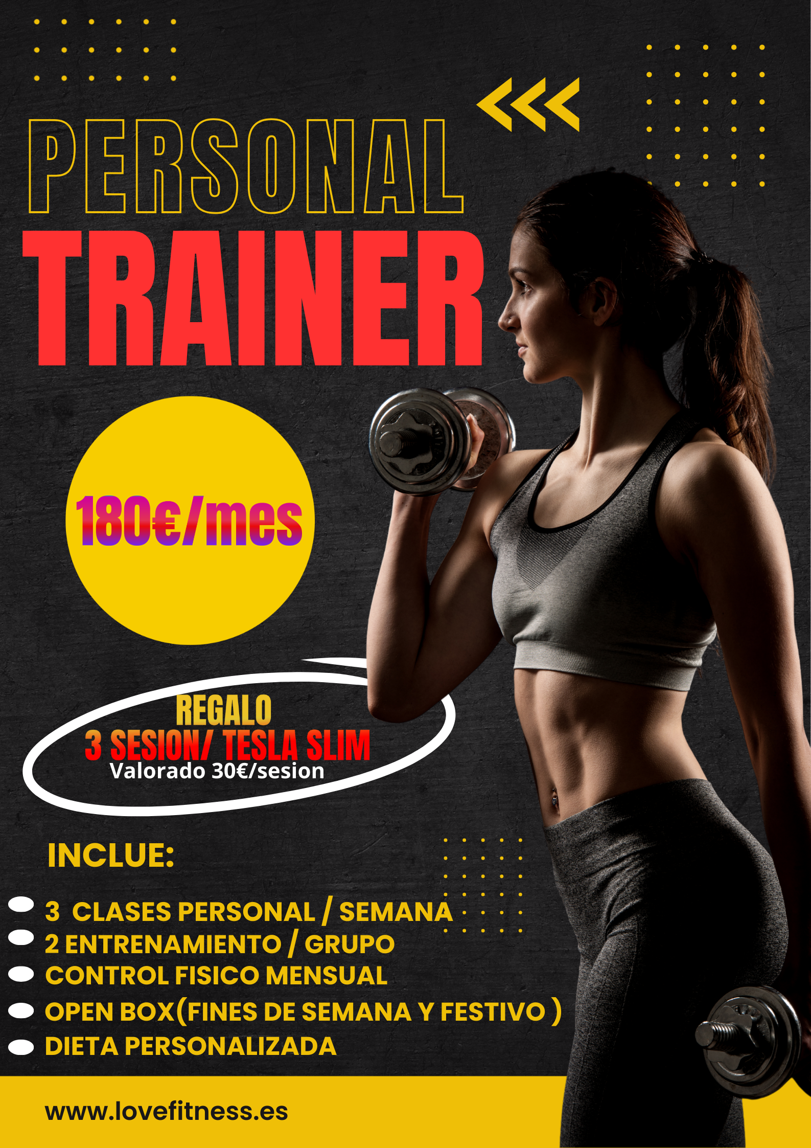• Personal Trainer (3 días/semana + 2 grupales): 180€/mes (con derecho a Open Box fines de semana y festivos).
